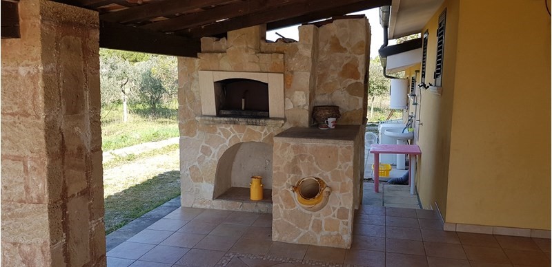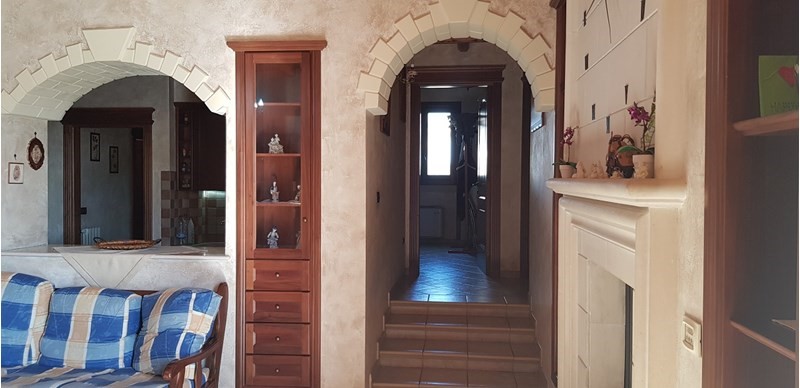 La villa si sviluppa a piano terra con una copertura di mq. 202 ed è composta da soggiorno, cucinotto in muratura, 3 camere da letto, doppi servizi, ripostiglio ed un piccolo soppalco in legno, oltre ad ampio garage – deposito adiacente di mq. 49.