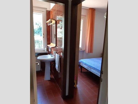Bellissimo e curato appartamento in villetta a schiera con ingresso indipendente, disposto su due livelli, composto al piano primo da soggiorno ampio che si affaccia sul bel terrazzo vivibile arredato e con tenda da sole, luminosa zona pranzo, cucina con accesso al piccolo giardinetto sul retro con barbecue, camera matrimoniale, bagno con doccia, al piano superiore disimpegno con terrazzino, camera matrimoniale grande e molto bella , cameretta singola, bagno con vasca e doccia. Tv ,Lavatrice. NO aria condizionata, no lavastoviglie. Posto auto privato.