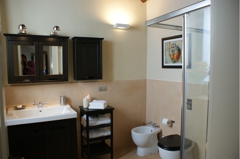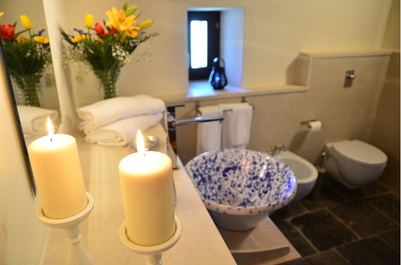 L’edificio, di importante valenza storica, che conserva anche un’antica cappella privata, è stato recuperato con un attento restauro conservativo e tecniche ispirate ai principi della bioarchitettura, per conservarne il sapore originario. Travi di castagno, tetti in incannucciato, intonaci a calce colorati e ancora muri in pietra calcarea locale a vista, pavimentazioni in coccio pesto gettate in opera e nella cosiddetta pietra pece.