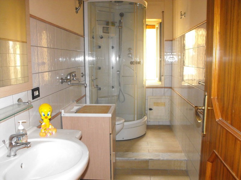 Appartamento di civile abitazione sito al quarto piano compreso porzione di lastrico solare, composto di: ingresso/salone, corridoio, cucina abitabile, tre camere, due bagni, tre ripostigli, balconi, per una superficie di mq 150. L'appartamento è dotato di riscaldamento autonomo ed è predisposto per l'allacciamento alla rete cittadina del gas metano.