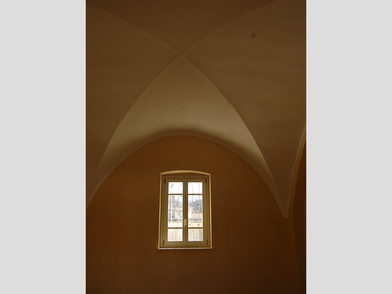 E’ stata curata l’insonorizzazione degli ambienti. L’intonaco interno ed esterno è a calce naturale per una migliore traspirabilità e benessere. La tinteggiatura interna è stata eseguita con la finitura a velatura, con sfumature gialle e bianche, tecnica che permette una lunga durata del colore. L’ampio spessore delle mura consente di ottenere gli ambienti caldi con un basso consumo di gas metano nel periodo invernale, mentre in estate gli ambienti rimango freschi senza la necessità di utilizzare l’aria condizionata.