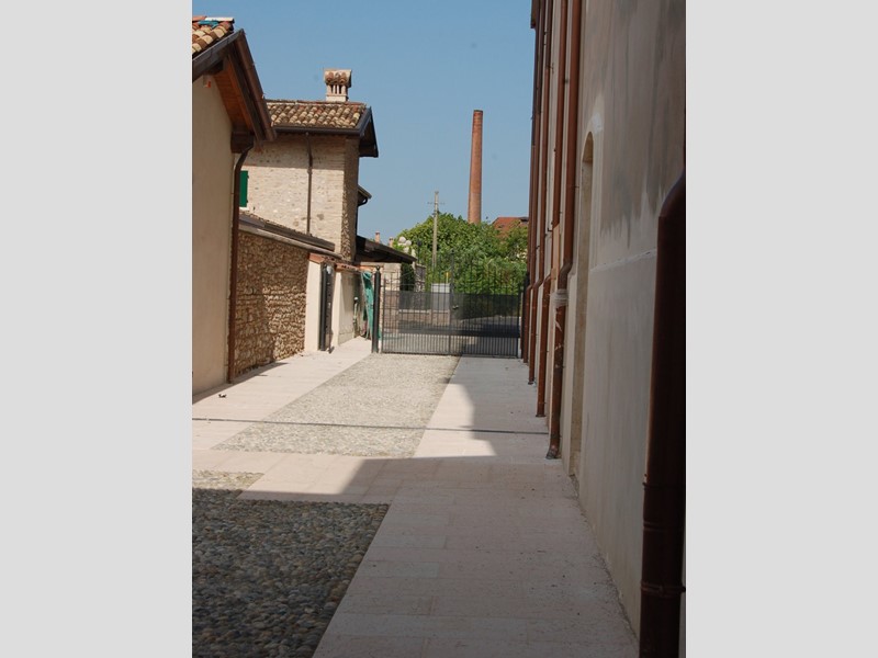 La pavimentazione delle parti comuni (parcheggi e percorsi pedonali) sono in ciottoli di fiume e lastre di pietra di Prun antiscivolo.