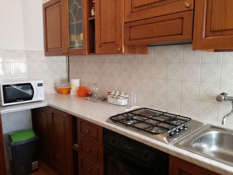 Libero ad Agosto. Luminoso ed accogliente bilocale, al quarto piano con ascensore, in signorile condominio con grande giardino, in centro paese, L'appartamento è composto da piccola cucina separata, grande soggiorno con zona giorno e salotto, camera da letto matrimoniale e due letti singoli. Bagno con lavatrice e doccia.
