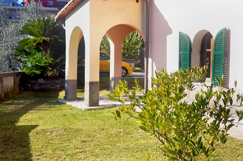 In una casa di 4 piani, APPARTAMENTO bilocale vista mare da 55 m² al piano terra (NON TRATTO CON AGENZIE): soggiorno con grande camino, zona cucina a vista da 2,60 m con piano di cottura ad induzione, cappa aspirante ed elettrodomestici incassati (frigo/congelatore a colonna, lavapiatti, forno elettrico ventilato), impianto autonomo di riscaldamento ed aria condizionata (pompa di calore) in soggiorno ed in camera, portico all’entrata da 11 m², giardino da 158 m² vista porto e mare, facenti parte della proprietà privata. Posto auto in parcheggio condominiale di 3 posti, con cancello automatico. La casa centenaria e signorile è immersa nel verde della campagna circostante (oliveti ed altri alberi da frutta) e nel contempo vicina al porto ed a tutte le comodità, di cui l’ospedale a 1000 m a piedi, poco più in auto, nell’immediata periferia della città di La Spezia (Valdellora, centro sto. 2,5 km). La casa è a 15 km da Portovenere ed a 10 km dal golfo di Lerici e dei bellissimi villaggi circostanti.