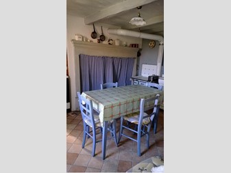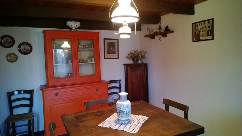 La casa è dotata di cinque camere di cui tre matrimoniali, un salottino e la sala pranzo. La cucina è provvista di un grande camino. Inoltre è presente un bagno con antibagno. Si accede alla cantina, che copre l’intera pianta della casa sia dall’interno che dal giardino. Lo stabile è in ottime condizioni, i pavimenti del piano terra e il tetto sono stati completamente rifatti recentemente con strutture portanti moderne ma finiture in stile. Il resto mantiene materiali originali molto ben trattati. I servizi (acqua ed energia elettrica) sono funzionanti ed attivi. Stufe a legna sono presenti per il riscaldamento degli ambienti. Gli ambienti sono totalmente arredati con mobili d'epoca. La casa è direttamente accessibile dalla strada che attraversa la borgata pur essendo in posizione rialzata. Insieme alla casa si vendono altre proprietà accessorie ed alcuni terreni ubicati in zona con caratteristiche di bosco ceduo e castagneto. In particolare il castagneto è vicinissimo alla casa e ospita un parcheggio privato per 2 macchine.