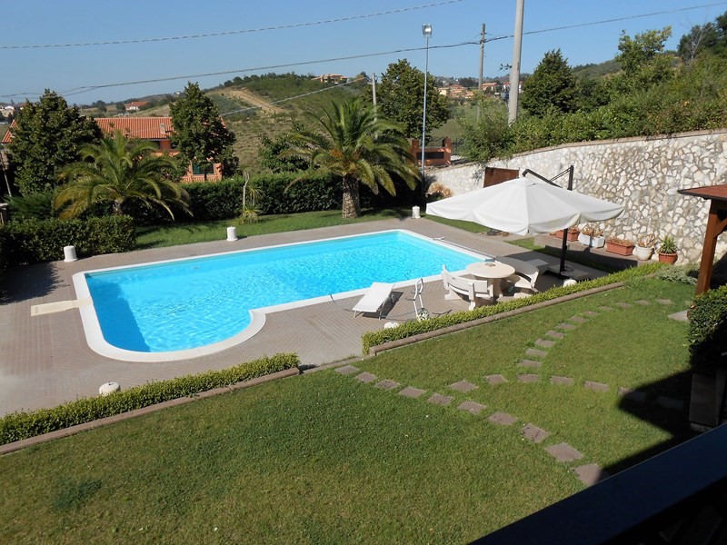 In zona panoramicissima, a pochi minuti dallo svincolo dell'autostrada A25 proponiamo in vendita villa singola di recente costruzione, ottimamente mantenuta, disposta su 4 livelli, suddivisa in 3 unità abitative di ca. 100 mq ed un'ampia taverna, oltre a magnifico giardino con piscina, completano l'offerta 2 ampi magazzini e terreno di ca. 5.000 mq.