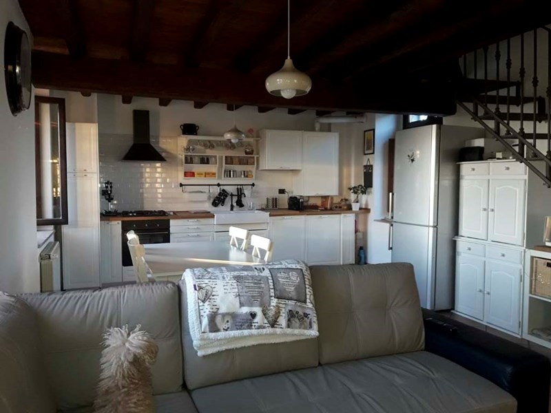 Articolato su due livelli, questo delizioso trilocale si compone al piano d’ingresso di un’accogliente terrazza che conduce all’interno dove ci accoglie una zona living perfettamente rifinita e ben organizzata con cucina; una particolare scala in ferro battuto conduce al livello superiore dove è situata la zona notte composta da camera, cameretta e servizio.