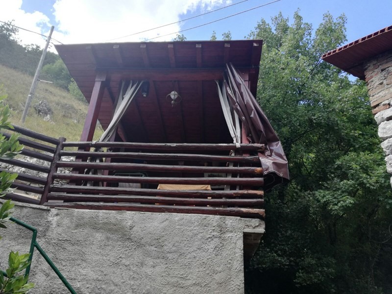 Due camere da letto matrimoniali, un bagno. Disposta su tre piani internamente, all'esterno presenta due ulteriori piani a ridosso della montagna, con gazebo di legno.