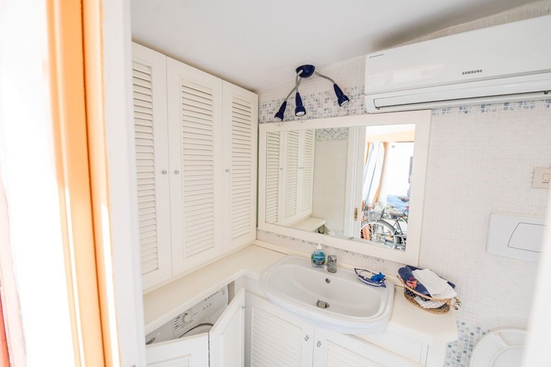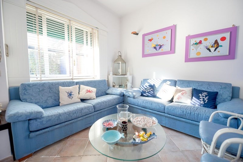La villa è disposta su due livelli con a piano terra un delizioso giardino verde, curatissimo, un comodo patio attrezzato per la vita all'aperto, dotato di un barbecue in muratura, una doccia esterna calda ed una dependance con camera e bagno privato. La zona living al piano terra dalle attraenti linee moderne e con interessanti inserti in pietra, è composta dal salotto dotato tra l'altro di camino e la cucina. La zona notte al primo piano è composta da due camere matrimoniali di cui una con bagno in camera ed una camera singola, oltre ad un bagno con doccia. Ogni ambiente è dotato di aria condizionata ed armadi a muro funzionali e pratici.