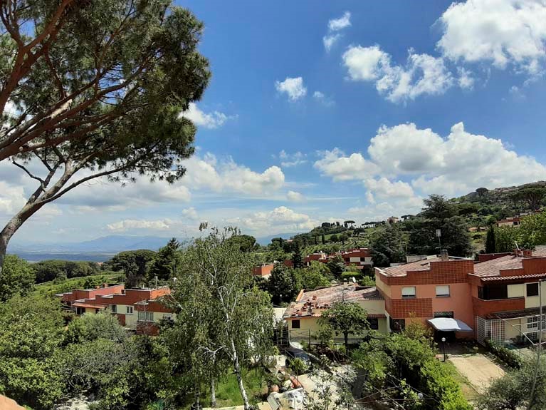 Il tutto è completato da due posti auto di proprietà nella corte condominiale e da una terrazza vivibile di mq 25 circa attigua alla zona giorno che è il sicuro valore aggiunto in quanto permette di godere di una splendida vista su tutto il territorio circostante, Roma e Monteporzio.