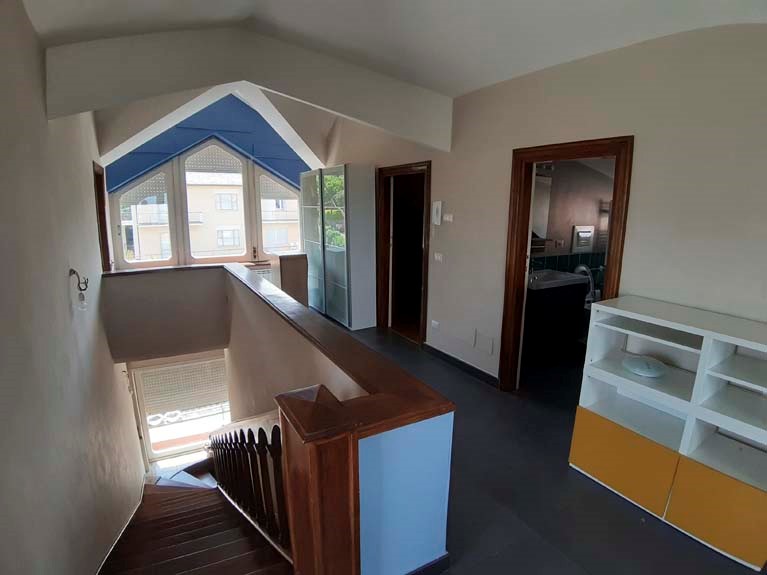 L’appartamento gode di un accesso indipendente dal piano primo dove troviamo un ampio ingresso con terrazzino attiguo, salendo al piano superiore siamo accolti da un grande salone con cucina a vista, due comode camere da letto, servizio e due ripostigli.