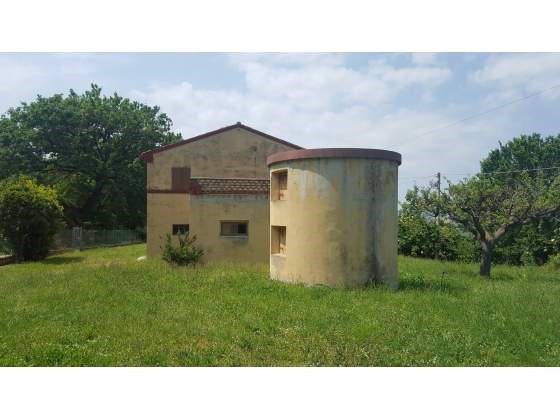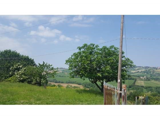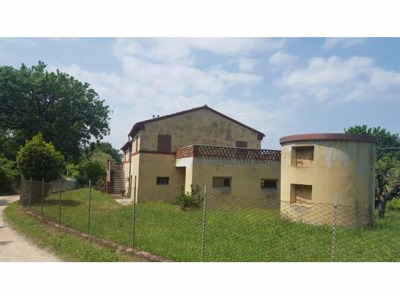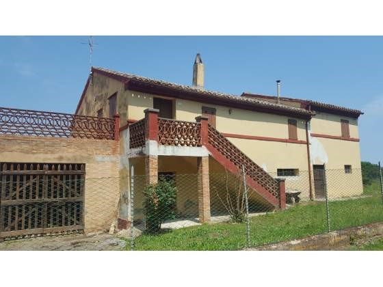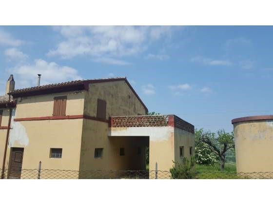 Vendesi casa nella campagna di Civitanova Marche, in posizione panoramica. Il primo piano è composto da una ampia cucina con camino, una sala, tre camere da letto e un bagno. Sempre dal primo piano si accede a due grandi terrazze panoramiche da cui si vede il mare. Il piano terra è molto più ampio perché ci sono tutti gli accessori di una fattoria, oltre ad un silos in muratura. La proprietà sorge su un terreno di circa 5.000 mq. e il giardino recintato ospita piante da frutto e cespugli di rose. Classe energetica G.