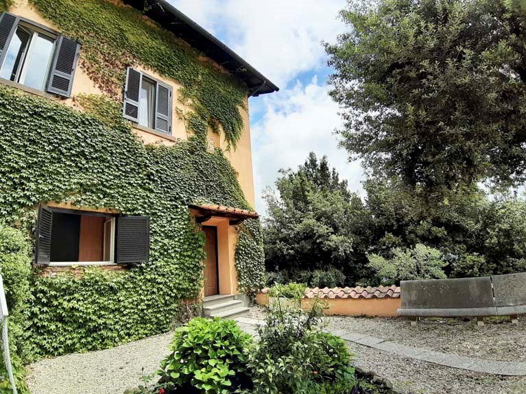 CASTEL GANDOLFO Via Gramsci in esclusivo casale degli anni '20, finemente ristrutturato con materiali capaci di conservare il carattere dell’epoca, circondato da un parco di mq 26.000, bosco ed uliveto, appartamento di mq 45 circa vista lago in buono stato d’uso ubicato al primo piano con ingresso indipendente.