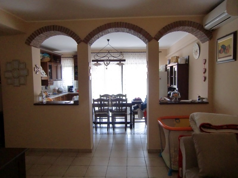 Al primo piano ingresso su salone-cucina che si affaccia su un balcone terrazzato, attraverso un disimpegno si ha accesso a una camera e un bagno con vasca, tramite una scala a chiocciola si accede al secondo piano mansardato, nel quale troviamo un ampio disimoegno dal quale si ha l'accesso a due camere da letto e un bagno con doccia. Lavanderia esterna verandata, infissi in alluminio e vetrocamera, riscaldamenti. Garage 27 mq.