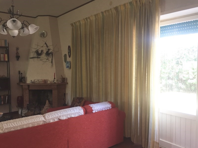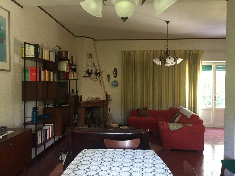 Piano terra: salone triplo, cucina e bagno. Primo piano: 2 camere matrimoniali, 1 camera doppia, 1 cameretta singola, 2 bagni.