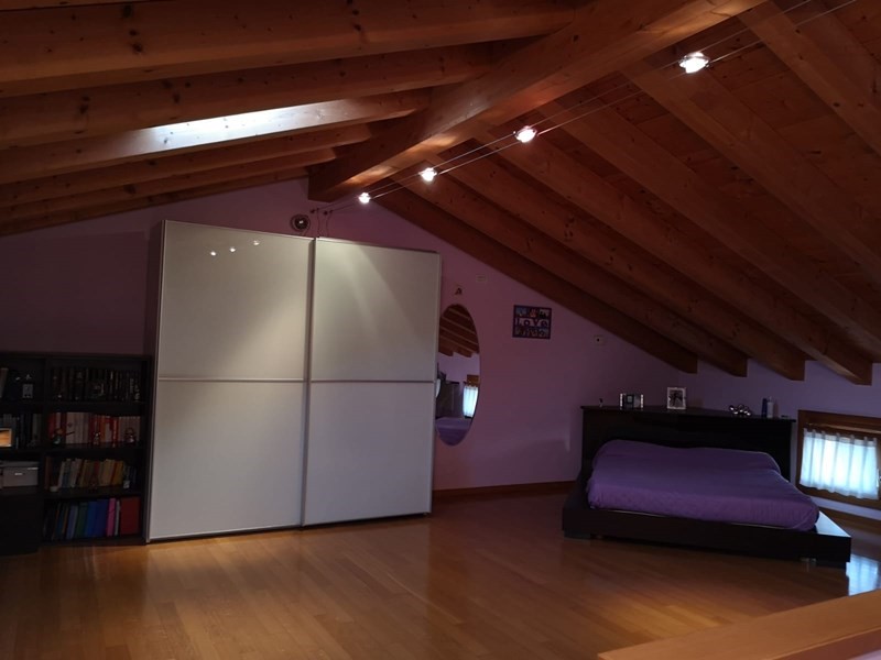 Al piano mansardato troviamo un ampio open space adibito a camera matrimoniale, studio e palestra, bagno con doccia. Impianto di riscaldamento a pavimento, climatizzatore su ogni piano, termo camino, pannelli solari per acqua calda, zanzariere in tutte le finestre, impianto d'allarme ed irrigazione, porta garage con basculante motorizzato, posto auto esterno. Impianto di allarme volumetrico e perimetrale. Strada privata lontana dal traffico ma vicina a tutti i servizi del Comune.