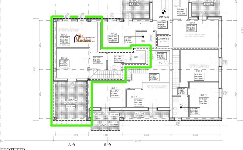 Generose altezze del secondo livello (min. 2,30mt - max 3,50mt).