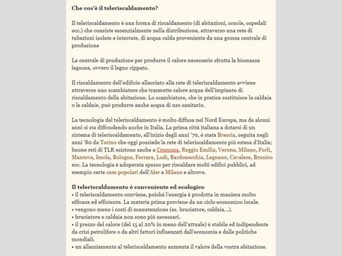 - Impianto di Teleriscaldamento (con notevole risparmio economico)