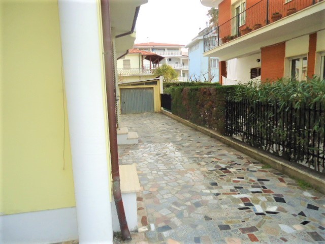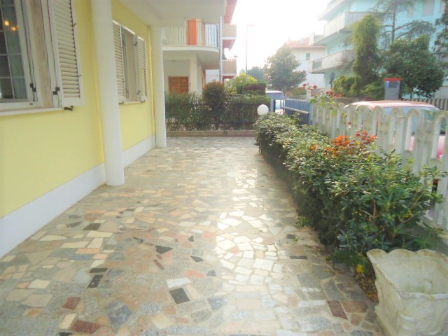 Proponiamo nello splendido contesto silenzioso e di pregio della zona centrale di villa Fiore a pochi metri dal lungomare e dalle pinete, comodo appartamento al piano terra con corte esterna.