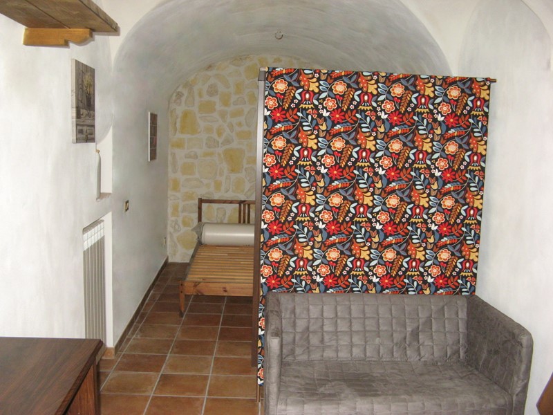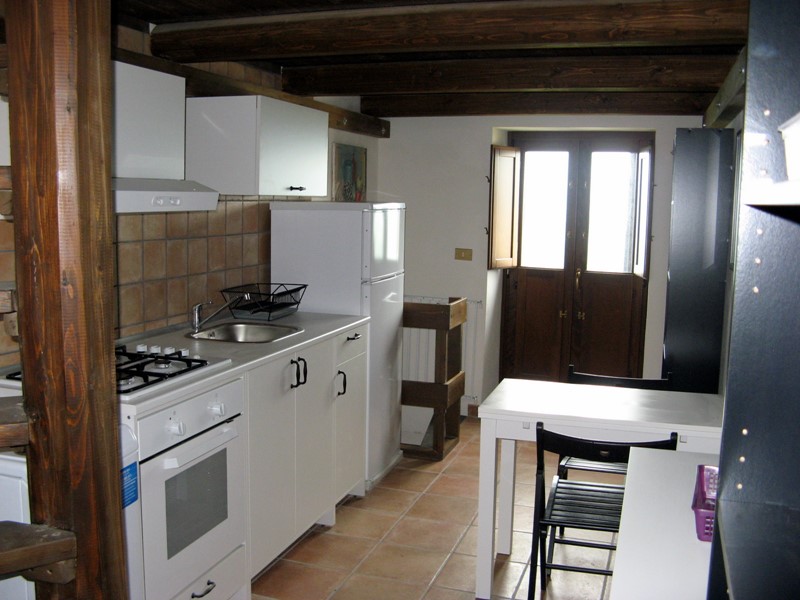 Graziosa piccola abitazione su tre livelli (57 mq.l.) ristrutturata, alla sommità del paese sotto l’antico castello, con belle vedute di tutta la Valle Peligna fino alla città storica di Sulmona. L’antica preziosa porta principale immette in un lungo ambiente con soffitto in legno rustico da cui si accede al bagno fornito di doccia e all’angolo cucina/pranzo totalmente attrezzato con nuovi elettrodomestici; una scala di legno conduce ad un ampio locale sottotetto adatto come stanza da letto dove un lucernario con vetro blindato permette una splendida veduta del castello. Dal pianoterra un’altra singolare scala di legno porta al piano inferiore con un lungo locale con soffitto a volta e preziose pietre sulla parete di fondo; il locale inferiore è suddiviso in una piccola stanza da letto ed uno studio/soggiorno. Le finestre hanno piccoli balconi, muniti anche di zanzariere, che si affacciano sulla verde valle sottostante. I pavimenti della casa sono di ceramiche rustiche e gli infissi interni/esterni in robusto legno e doppi vetri basso emissivi, nel rispetto dei criteri del risparmio energetico; doppio tetto in legno coperto con tegole antiche.