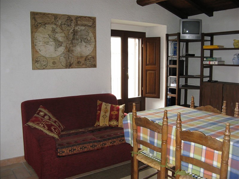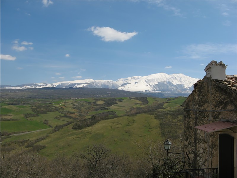 Monolocale di circa 30 mq (max 4 persone) al piano superiore di una casa ristrutturata in piccolo borgo con splendido panorama sul territorio del Parco Nazionale della Majella-Morrone. Il monolocale ha tetto di legno a vista e presenta uno spazio con cucina totalmente attrezzata, due divani letto (2p + 1p) ed un bagno con cabina doccia. Una scala interna in legno conduce ad un piccolo soppalco che può comunque ospitare 1 letto aggiuntivo (1p). Balconcino panoramico con ampia veduta dei Monti della Maiella e del Morrone, zanzariere alle finestre e climatizzazione estiva-invernale.