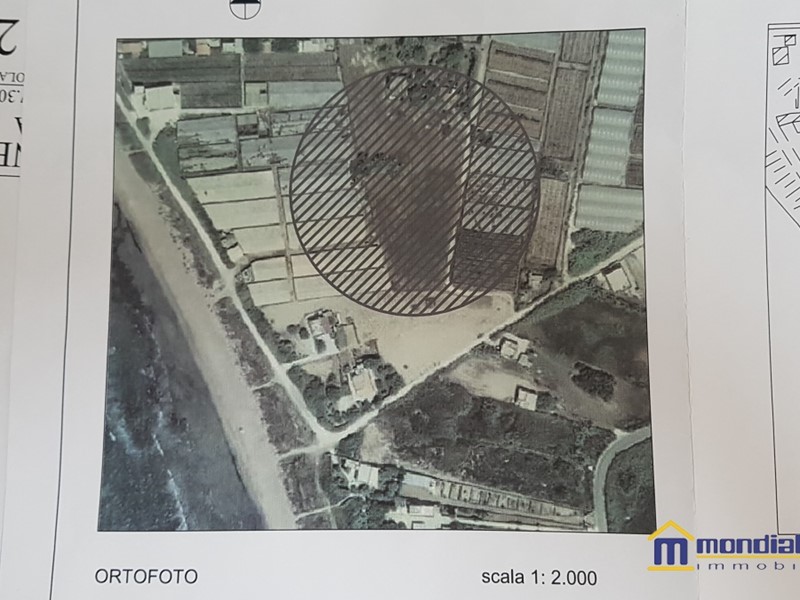 A 170 metri dalla spiaggia e dal mar Mediterraneno, stacco di terreno della superficie di mq. 5860 con progetto già approvato per la realizzazione di un fabbricato di mq. 350 circa, con possibilità di adattarlo a scopi turistici.