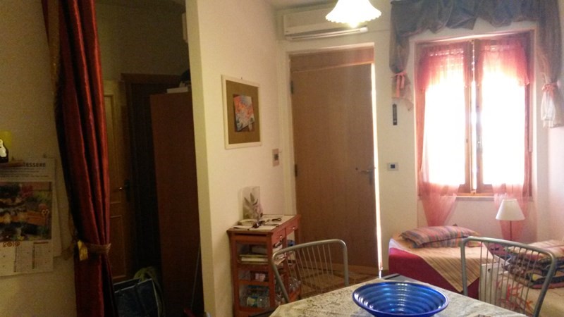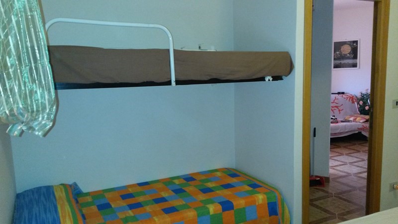 Appartamento al primo piano, composto da soggiorno cucina attrezzato da una cucina componibile lineare, divano letto più pouf letto, camera matrimoniale completa con in più letti a castello, ingresso con disimpegno e ampio bagno. Un terrazzo arredato con tenda prendisole. Posto auto di proprietà. Vista mare con possibilità di scendere al mare a piedi a soli 500metri.