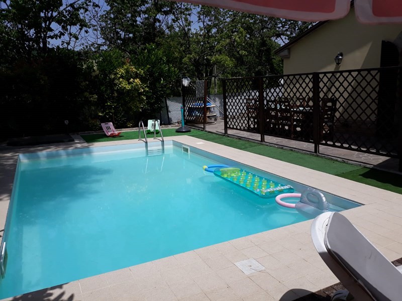 Roncaglia: A 4 km dal centro immerso nel verde e nella tranquillità delle splendide colline pesaresi; proponiamo in esclusiva ampia soluzione indipendente con piscina su casale rustico completamente e finemente ristrutturato nel 2007. L'abitazione di complessivi mq.150 si dispone su 2 livelli ed è composta da: ingresso, salone doppio con camino, sala pranzo, cucina abitabile, 3 camere matrimoniali, 2 bagni e ripostiglio. Completano la proprietà: ampio giardino esclusivo di mq.380 con piscina, 3 posti auto e garage. finiture e impianti tecnologici di alta qualità - Ottima posizione