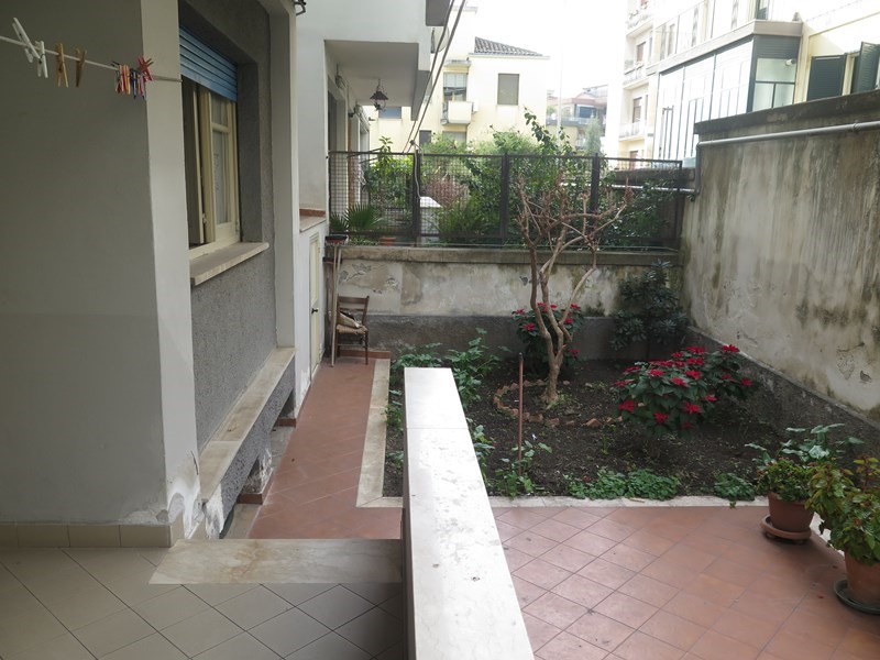 L’unità immobiliare, in una zona centralissima e ben fornita, della città, è sita al pian terreno, di una palazzina, anni ’80, di 4 piani, ed insiste di 110 mq più piccolo giardinetto privato di 30 mq circa.