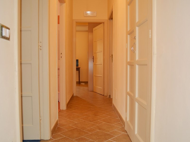 Da un luminoso vano scale si accede all’ingresso dell’appartamento, da cui si diparte la zona giorno con un ambiente che può essere utilizzato come studio o come ulteriore camera, una cucina abitabile di media dimensione, ed il salotto con un balcone che si affaccia sulla via principale e permette di vedere una parte della città.