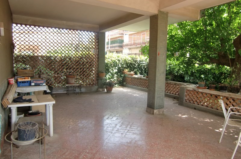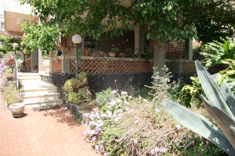 Trappeto – San G. la Punta zona centrale Villa singola con giardino di mq. 600, posti auto e ampia legnaia catastata. Composta al piano terra da: portico, ingresso con scala, soggiorno, porta di collegamento al garage di 23 mq. con cucinino e servizio; al primo piano da : due camere da letto, cameretta, salone doppio con finestra e porte con accesso a un terrazzino, cucina e bagno con vasca; al piano mansardato : tre ampi ripostigli sottotetto, grande unico vano con finestre e balcone, cucinino e servizio con doccia.