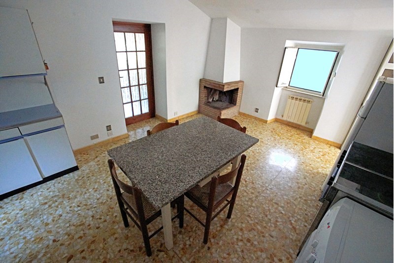 Piano rialzato affaccio sulla citta' di Subiaco composta da: patio entrata, ambiente unico composto dasalone, camino ed un ampia cucina, poi a seguire un piccolo bagno con finestra, stanza armadio intercomunicante con due luminose camere da letto, infissi in alluminio e termoautonomo.