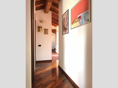 troviamo il secondo bagno con sanitari sospesi, le tre camere da letto e la lavanderia. Doppio balcone per la zona giorno e terrazzo di 16 mq circa per la zona notte. Impianto termoidraulico con divisione per i due piani e caldaia sostituita da poco. L' immobile si presenta in ottimo stato con rivestimenti di pregio, serramenti in doppio vetro, impianto di condizionamento e predisposizione per l'allarme. Completano la soluzione un box doppio e un posto auto di proprietà al piano interrato. Prezzo Ottimo!