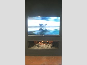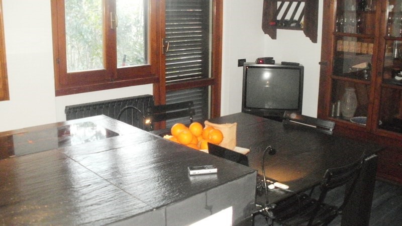 Piano primo: cucina open space con enorme penisola in ardesia nera naturale, piano induzione top filo, stile razionale, dalla quale si accede a giardino tergale di ca 40 mq; secondo open space/soggiorno con termocamino a legna 42 kw angolare su misura per riscaldamento intera abitazione con impianto TV incassato. Seconda stufa a pellet in cucina. Accesso a prima terrazza frontale con copertura a loggia in legno.