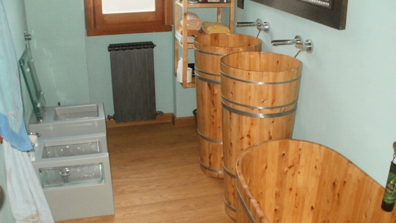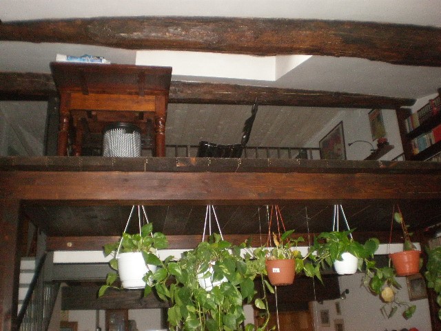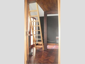 Piano secondo: camera matrimoniale e studio open space (eventualmente trasformabile in seconda camera matrimoniale), parquet; bagno in parquet, vasca e lavabi in legno ginepro. Tra primo e secondo piano è stato ricavato un soppalco con grande guardaroba su misura.