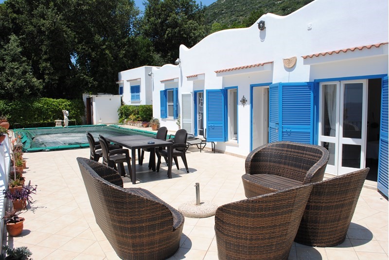 San felice circeo punta rossa a pochi minuti dal centro storico proponiamo questa esclusiva villa panoramica per settembre composta da: corpo centrale suddiviso su 2 livelli; - primo piano loggia di 8 mq, ingresso disimpegno 3 grandi camere da letto matrimoniali e una cameretta con 2 bagni arredati . due camere matrimoniali hanno l'affaccio fronte mare e l'uscita diretta sulla terrazza completa di lettini prendisole e piscina dotata di spogliatoio doccia e bagno. - piano terra e' composto da un soggiorno di 60 mq con camino e cucina a vista completa di elettrodomestrici, frigo lavastoviglie; il soggiorno ha un accesso diretto ad un altra terrazza arredata di forno a legna tavoli gazebo per 16 persone, tavolo da ping pong, biliardino, jumping e altalena per bambini - depandance con letto matrimoniale bagno e balconcino posto auto privato per 5/6 macchine per il periodo estivo la proprieta' fornira' biancheria per le camere da letto e per i bagni e tutto il necessario per la cucina. sono ammessi animali. la richiesta e' € 5.000 per settembre. per ulteriori informazioni e foto della villa contattare i numeri 06/5431191 o 06/59637793