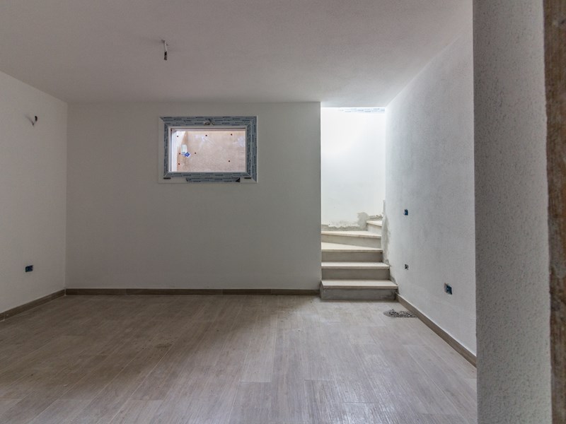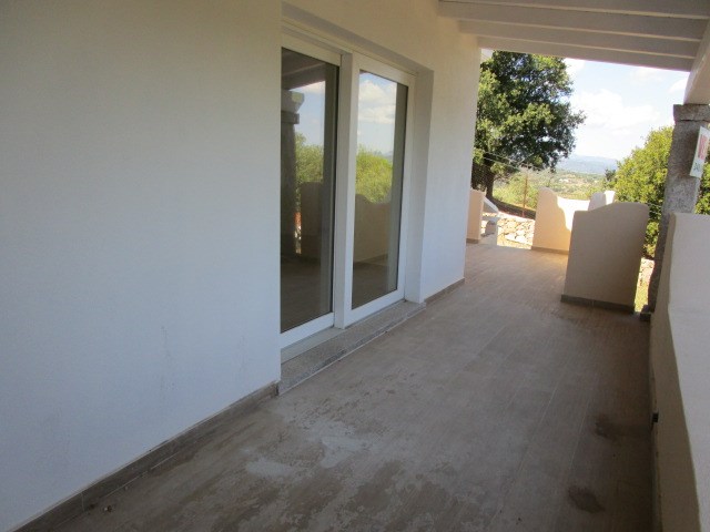 " DOMO TUA " Porzione di nuova Villa bifamiliare, in posizione dominante, vista mare, integra il suo fascino con quello naturale dello scenario circostante, pensata per chi cerca ampi spazi interni ed esterni, costruita ad opera d'arte, con materiali locali di pregio, si sviluppa su due livelli, piano terra e piano seminterrato. Al piano terra, c'è la zona living, ottimamente esposta che si apre sulla generosa veranda, dalle travi sbiancate, avvalora tutta la zona giorno, al piano terra oltre al soggiorno con cucina a vista, ci sono due camere e un bagno; dal disimpegno parte la comoda scala, ben arieggiata e illuminata da ampia finestra, che collega al piano interrato, quì c'è un altra stanza, il locale lavanderia, bagno, sala hobby con accesso diretto anche dal giardino.