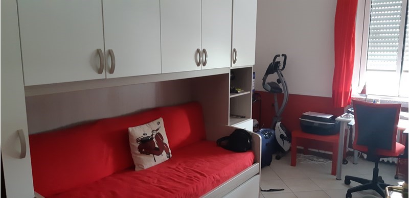 Il disimpegno porta alla zona notte dove troviamo la luminosa camera matrimoniale, la cameretta, il bagno con vasca e il comodo ripostiglio.