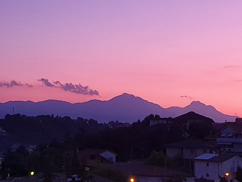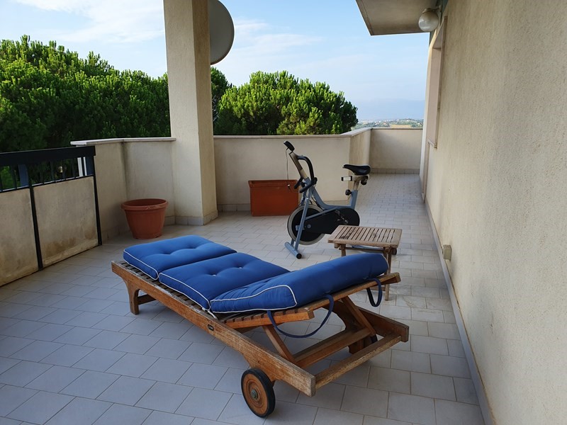 Appartamento all’ interno del residence Rosa dei Venti, sul Colle del Telegrafo, a cinque minuti di macchina dal centro di Pescara, e con fermata dell’autobus sotto casa. L’appartamento è al secondo piano con ascensore ed ha un ampio ingresso che suddivide la zona giorno dalla zona notte. Nella zona giorno abbiamo una cucina abitabile, un grande ripostiglio, il soggiorno e lo studio con terrazzo di circa mq. 45 vista mare. Nella zona notte abbiamo 2 bagni, uno con vasca ed uno con doccia, 4 camere da letto (una delle quali è attualmente utilizzata come guardaroba). Le 3 camere da letto attualmente in uso hanno un unico balcone di circa mq. 50 sia vista mare che montagna, da cui ammirare la Bella Addormentata e la Maiella.