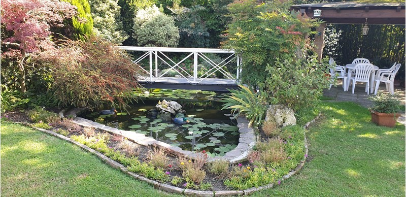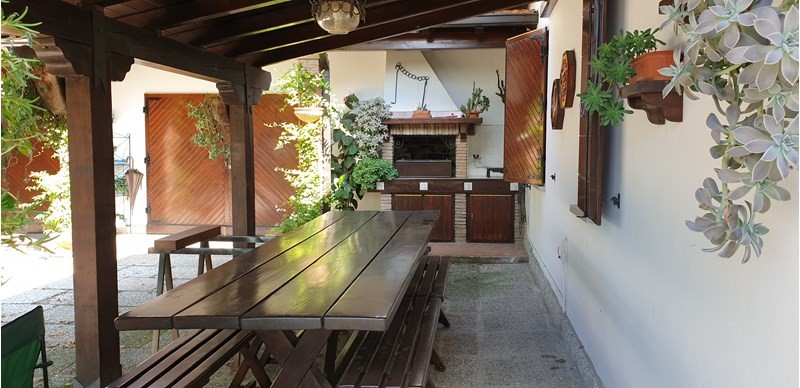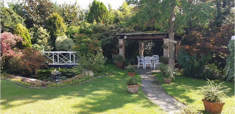 casa indipendente di 160mq,800mq scoperto esclusivo con laghetto e piante di pregio,cucina abitabile in muratura 2 bagni 1 matrimoniale,2 singole,salone con camino,1 studio,2 garage,2 disimpegni esterni,riscaldamento autonomo con caldaia pallet,climatizzatori con pompa calore