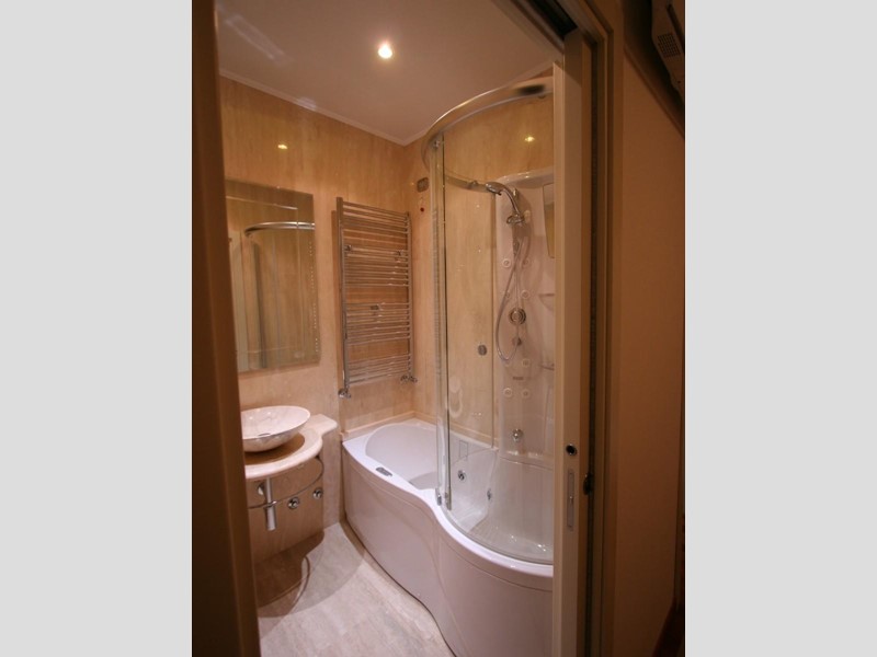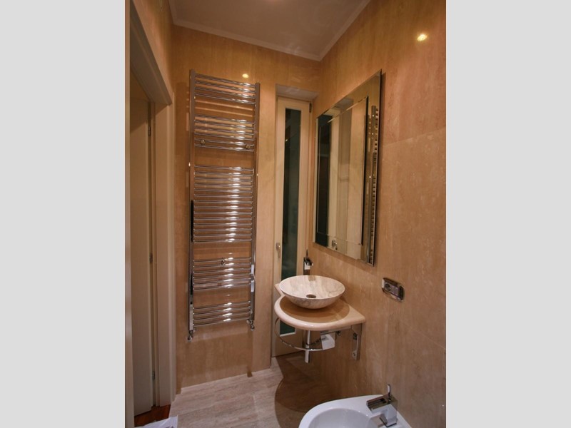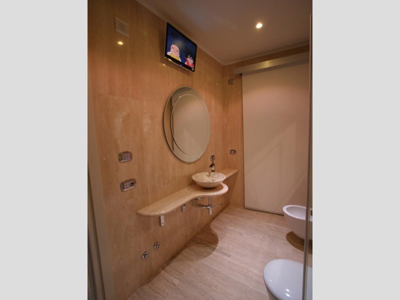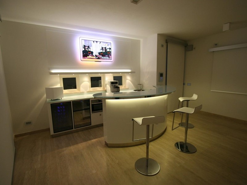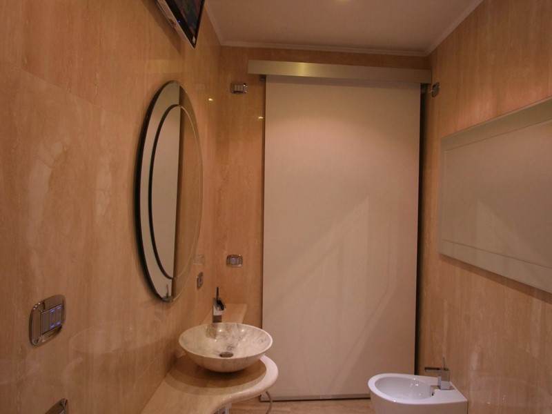Marmi pregiati, inserti su misura molto particolari sono a corredo di questa casa sapientemente rifinita. Le cabine delle doccia sono della prestigiosa linea Calibe, è fornita di rubinetteria a cascata dell'az. Gessi. Per quanto riguarda l'open bar si rimanda all'estro e alle soluzioni di Philippe Starck.