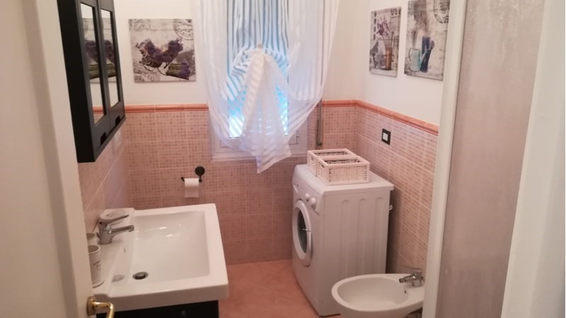 Bagno finestrato con box doccia e lavatrice