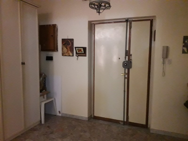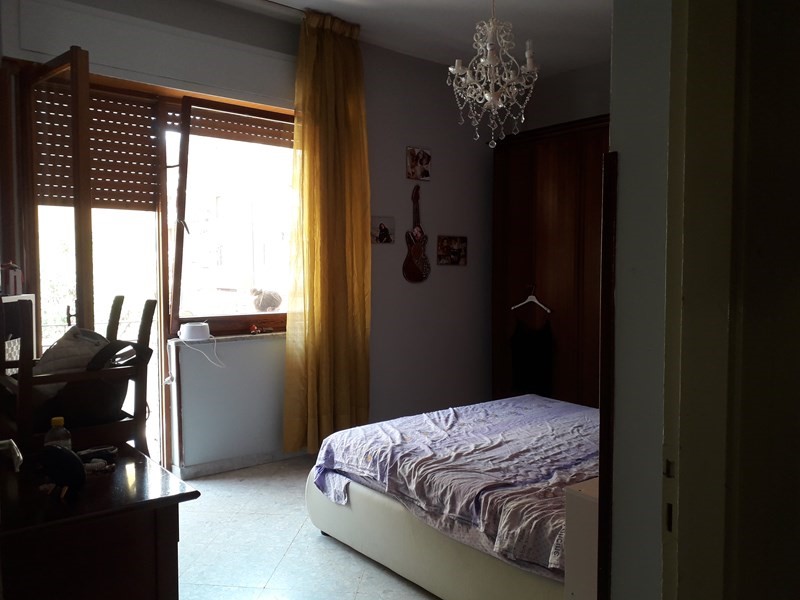 "Appartamento di mq 140 netti circa primo piano con ascensore: doppio ingresso, disimpegno, corridoio, salone doppio, cucina, 4 vani, due wc, tripla esposizione con balconi, box auto di pertinenza. Possibilità di ricavare due unità abitative, attualmente risulta locato con rendita di € 6.000, 00 annui. "."