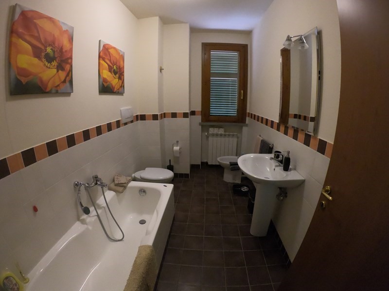 Appartamento luminoso di nuova costruzione, in perfetto stato ed abitato soltanto per soggiorni di breve durata. Si trova in zona silenziosa, all'interno di un complesso residenziale circondato dalla natura, ma a due passi da qualsiasi servizio, compresa la stazione di Ponte a Elsa. Vi si accede da un grande cancello automatico, che porta ai due posti auto riservati sul retro della struttura e ad uso esclusivo della proprietà dell'immobile, la quale è dotata anche di un grande garage con porta comunicante con l'interno, stile americano. L'appartamento si trova nella parte alta del complesso e si apre all'interno di una grande zona luminosa open space, la quale è circondata da grande terrazzo abitabile e che comprende cucina(dotata di forno, frigorifero e congelatore), zona soggiorno e piccolo salottino. Dalle scale con ringhiera in ferro battuto si accede alla zona notte con 3 camere da letto, di cui una matrimoniale con grande spazio ricavato per eventuale cabina armadio più un terrazzo, una cameretta con possibilità anch'essa di letto matrimoniale, la terza ha un lucernario e può essere adibita a cameretta/studio. Poi troviamo i due bagni, uno più grande con vasca e uno più piccolo con doccia, entrambe con bidè. Essendo nella parte alta della struttura, esso è dotato di uno spazioso ripostiglio sotto/tetto di facile accesso(no scale) per riporre una grande quantità di cose : giocattoli, piumoni ecc. L'appartamento ha la predisposizione per splitter aria condizionata sia per zona giorno che notte e ha già installato impianto d'allarme sia battente che ad intrusione. Inoltre vi sono ulteriori spazi ricavati nel sotto scala e predisposizione in garage per la lavatrice e lavatoio. Possibilità di essere venduto ammobiliato, tutti arredi nuovi. Prezzo trattabile.