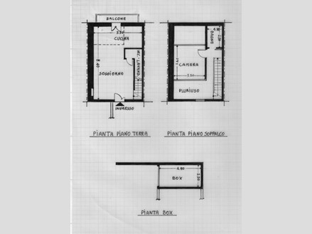 - piano rialzato delimitato da un muro con ringhiera alta un metro adibito a camera da letto con affaccio sul soggiorno e bagno con doccia (mq. 35,00).