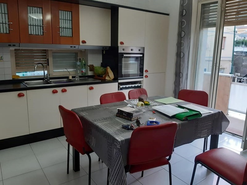 L'appartamento è composto da ampio ingresso, salone, ripostiglio, corridoio di disimpegno che conduce alle due camere da letto, di cui una matrimoniale molto ampia, ai due bagni e alla cucina abitabile e servita da due balconi. La zona è servita da negozi di prima necessità ed è vicina alle scuole sia primarie che liceo.