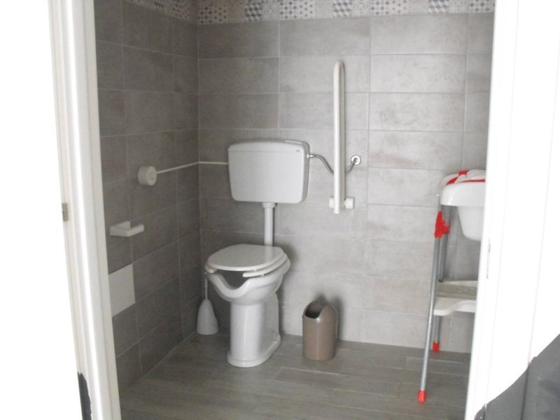 Il locale è dotato di n° 2 bagni di cui uno per disabili, n° 2 split aria calda/fredda e deumidificazione e di un proiettore con schermo.