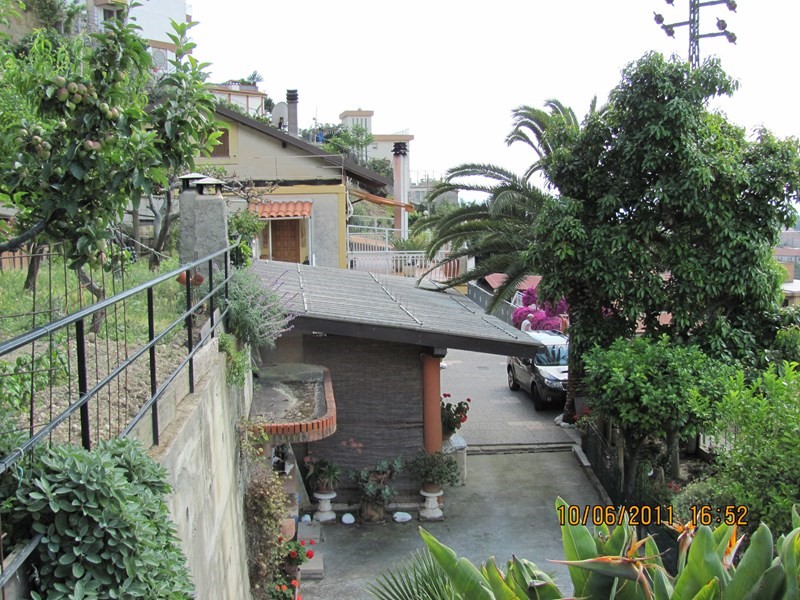 zona collinare, vendita casa indipendente con vista panoramica e così composta: Piano terreno: tinello con angolo cottura, camera da letto, bagno; più cantina di mq. 28; tettoia di mq. 27.; posto auto di mq. 32 Piano primo: salone con angolo cottura, grande camera da letto, doppi servizi; locale caldaia; terrazzo di mq. 57 Piano sottotetto: mansarda di mq. 50 ancora al grezzo. Terreno/giardino attiguo di mq. 2.600. Zona tranquilla, splendida vista mare.