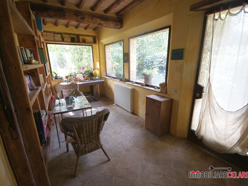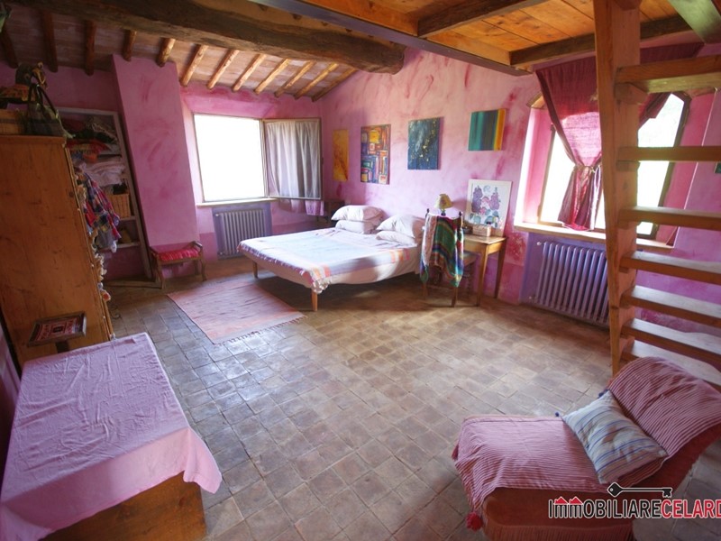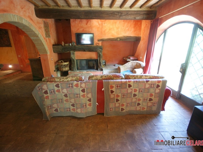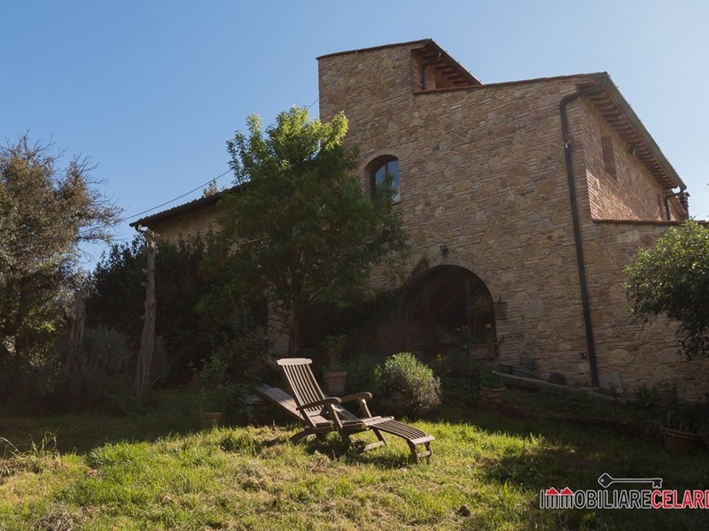 Vendesi Porzione di Casale toscano immerso nella campagna a pochi minuti da San Gimignano.\nLa porzione di casale, circa 270 mq , e' stata ristrutturata con isolamento in sughero del tetto e delle pareti perimetrali. Al suo interno vi sono pavimenti in cotto invecchiato e grandi travi in legno, l'impianto di riscaldamento collegato al camino produce anche l'acqua calda avendo cosi' un notevole risparmio energetico. La porzione di casolare è composta da una luminosa e grandissima zona giorno / cucina che da sul giardino, uno studio con ampie pareti vetrate, un bagno e un ampio disimpegno dal quale si accede al piano superiore dove troviamo due grandi camere matrimoniali con due bagni. Al primo piano si accede anche tramite le scale esterne in pietra e mattoni faccia a vista che danno su una terrazza. La terza camera con bagno ha un suo ingresso indipendente dal giardino. Inoltre vi e' un capanno posto poco distante dal casolare principale da ristrutturare. Il terreno e' composto da uliveto / seminativo e bosco di circa 21 ettari. L'acqua potabile è garantita da due sorgenti naturali oltre ad un pozzo artesiano. Le caratteristiche dell'immobile e la posizione lo rendono unico nel suo genere per i veri amanti della natura.\nLa nostra agenzia è strutturata per fornirvi, gratuitamente, assistenza per la richiesta di mutuo, notaio, tecnici e quanto necessario tramite gli istituti bancari ed i professionisti che collaborano con noi.\nwww.immobiliarecelardo.it