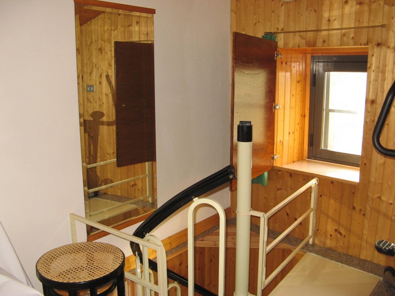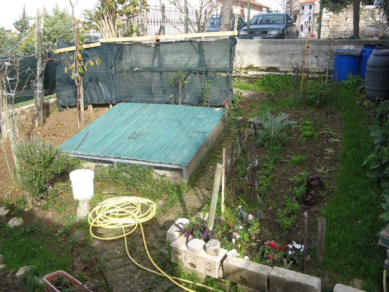 Il tetto della casa è con travi di ferro e tavelloni, coibentato con lana di roccia e protetto da guaina isolante. Tutti gli infissi esterni sono in alluminio color grigio scuro con doppi vetri, zanzariere e portelloni esterni di chiusura; i portoncini di ingresso hanno superfici vetrate. Il riscaldamento è attualmente garantito da una grande termo stufa a legna nel soggiorno e radiatori a parete. L’acqua calda sanitaria è prodotta da un bruciatore a gas (alimentato da bombole) alloggiato in una nicchia sul terrazzo.